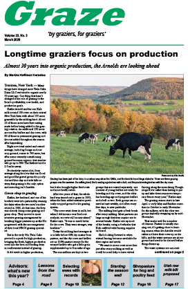 Graze magazine is devoted to management-intensive rotational grazing and family-scale livestock farms. Every issue is packed with ideas from real grazing farmers and ranchers who make their livings from the land. If you like the sample articles on this site, order a subscription and/or back issues to see more.